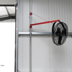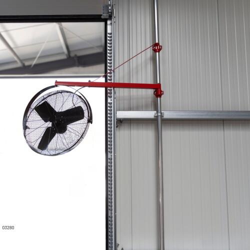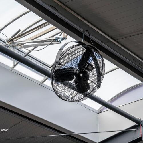 Fläkten har en kraftfull 250 W motor och 2-stegs hastighetskontroll, vilket gör det enkelt att justera luftflödet efter behov. Tack vare den flexibla 3D-orienteringen kan fläkten vinklas och riktas precis dit den behövs. Den levereras helt monterad, förutom hängande delar, vilket förenklar installationen.