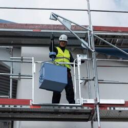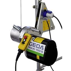 Ställningsvinsch GEDA Maxi 150 S har två lyfthastigheter som regleras med tryckknappen, 15 m/min och 45 m/min.